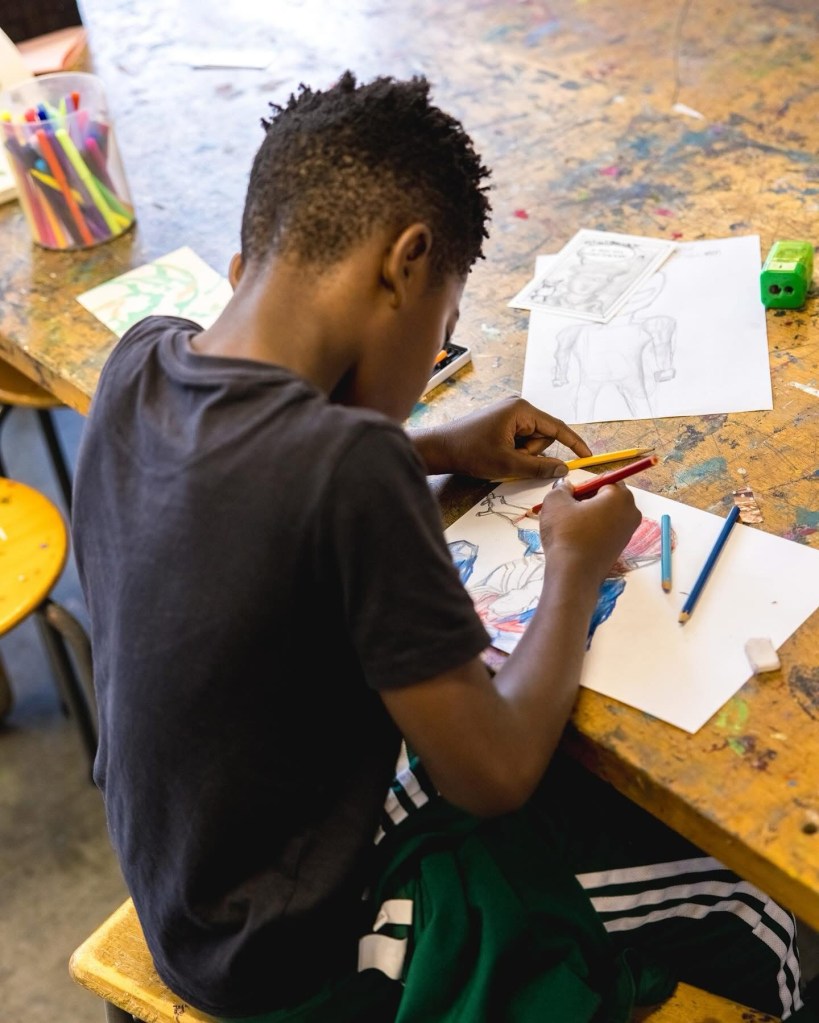 Ik zit al een aantal jaar op kunstles. Ik vind het leuk om creatief aan het werk te zijn. Stiekem ken ik nu ook veel meer kunstenaars.